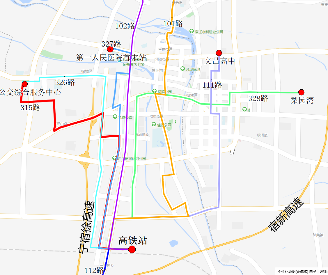 111路(文昌高中至宿遷高鐵站)。主要途徑:文昌高中—江山大道—燕山路—珠江路—項王路—江山大道—運河發(fā)展大道運河橋—南京路—發(fā)展大道—上海路—宿遷高鐵站。計劃投入10輛公交車。