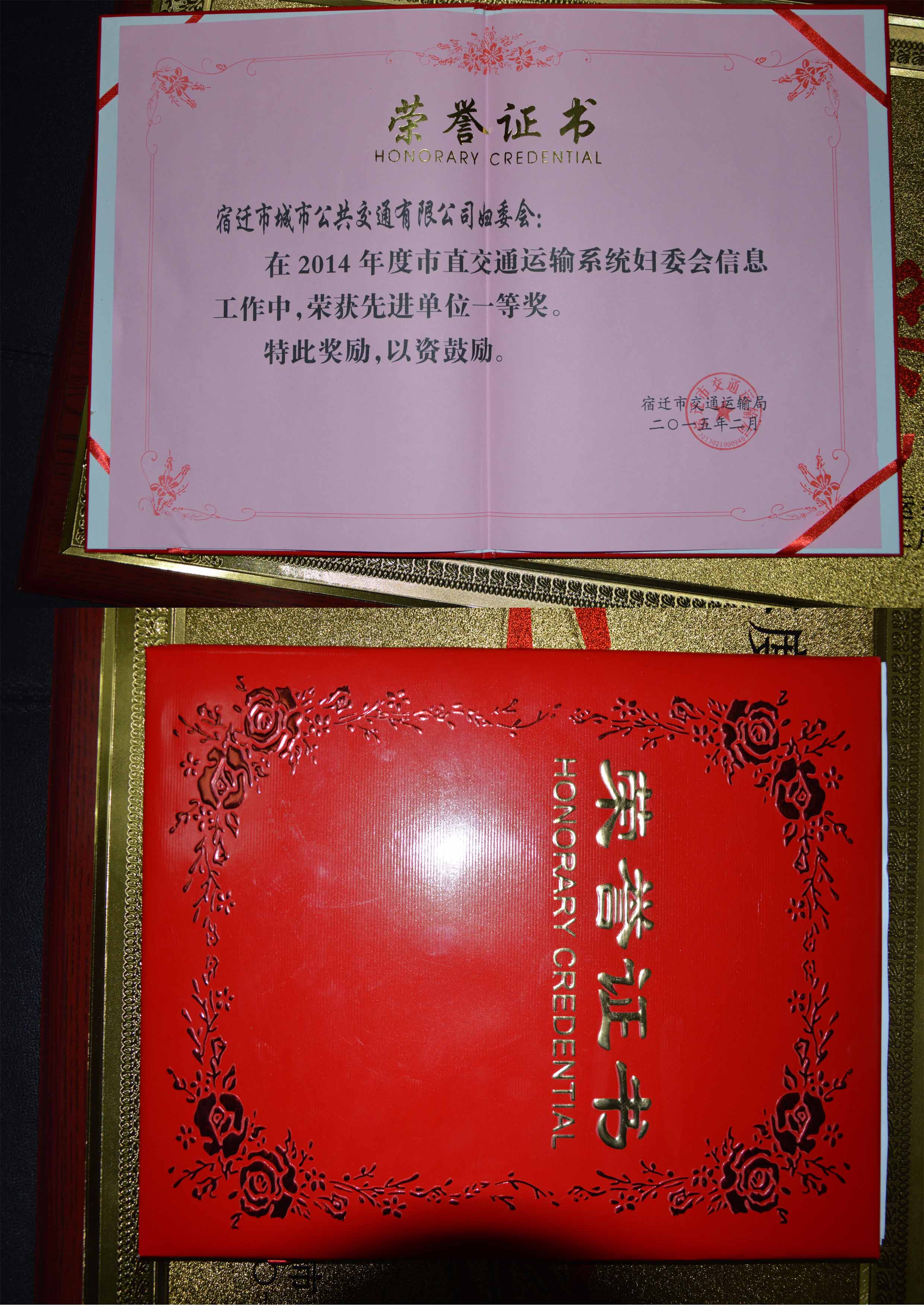 2014年公司婦委會榮獲市交通運輸系統(tǒng)婦委會信息工作一等獎