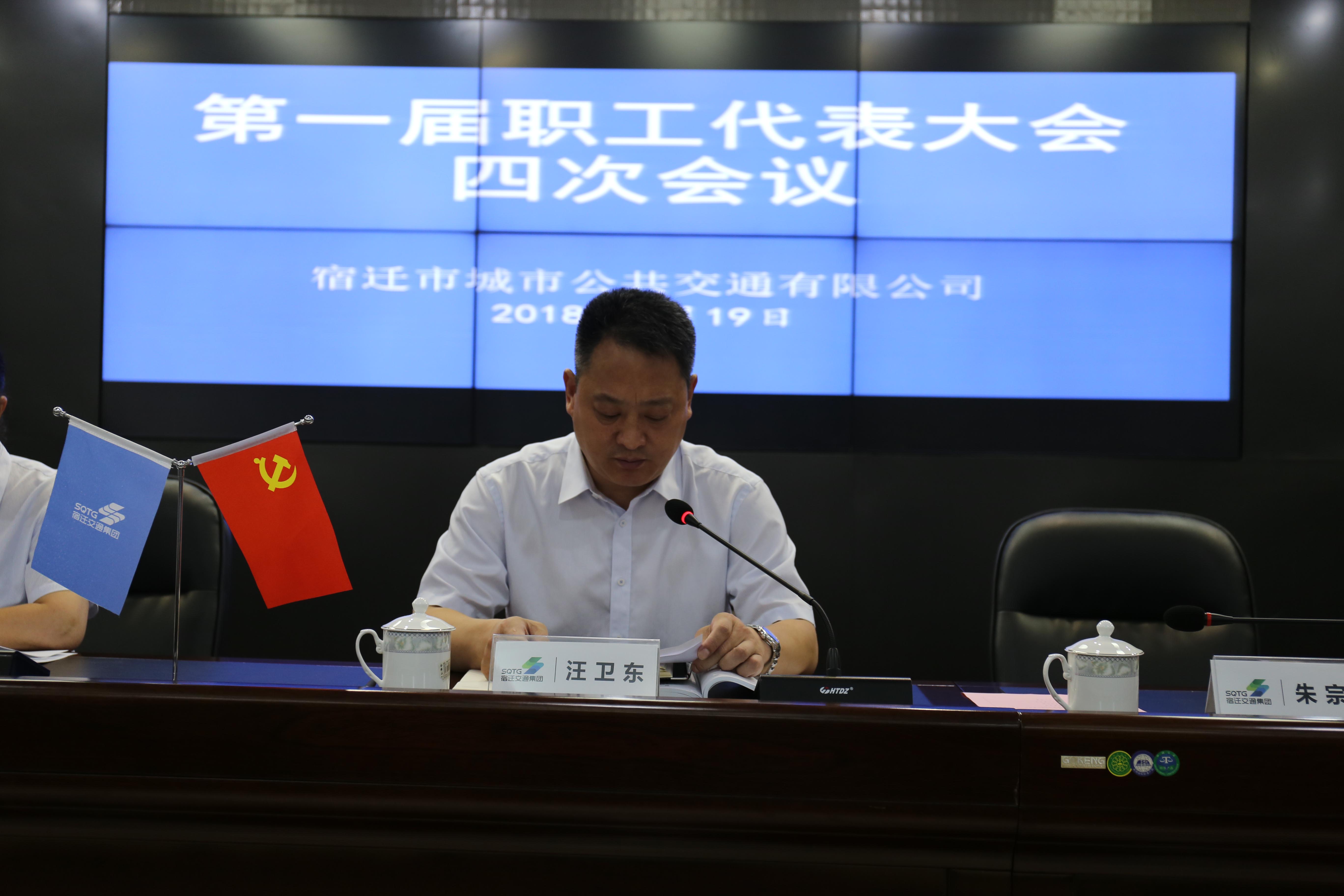 7月19日下午,宿遷市城市公共交通有限公司一屆職工代表大會四次會議在五樓會議室隆重召開。參加會議的106名職工代表濟濟一堂,共商公交發展之計,共謀企業和諧之策。本次職代會由黨總支副書記王振主持,公司領導班子、和監事會主席出席會議。