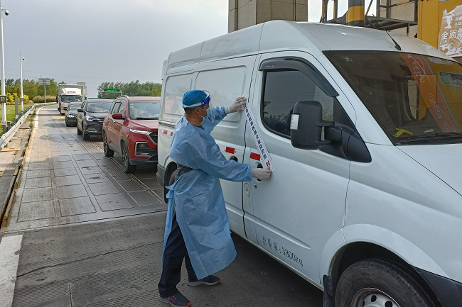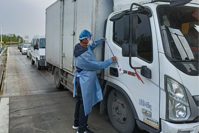 中午12點(diǎn)整,陸彬進(jìn)入指定位置,開始今天的執(zhí)勤工作。疫情防控進(jìn)入常態(tài)化后,執(zhí)勤工作的重心調(diào)整為嚴(yán)密排查貨運(yùn)車輛和高風(fēng)險(xiǎn)地區(qū)來宿車輛。雖然不必再像執(zhí)勤前期那樣逐一檢查過往車輛的健康碼、行車碼和48小時(shí)內(nèi)核酸檢測(cè)證明,但為織實(shí)織密疫情防控網(wǎng),杜絕漏查、誤查情況發(fā)生,陸彬要在6個(gè)小時(shí)的執(zhí)勤時(shí)間里盯緊收費(fèi)站出入口,嚴(yán)防因車輛監(jiān)查系統(tǒng)失誤讓高風(fēng)險(xiǎn)地區(qū)車輛越過“紅線”進(jìn)入宿遷市。
