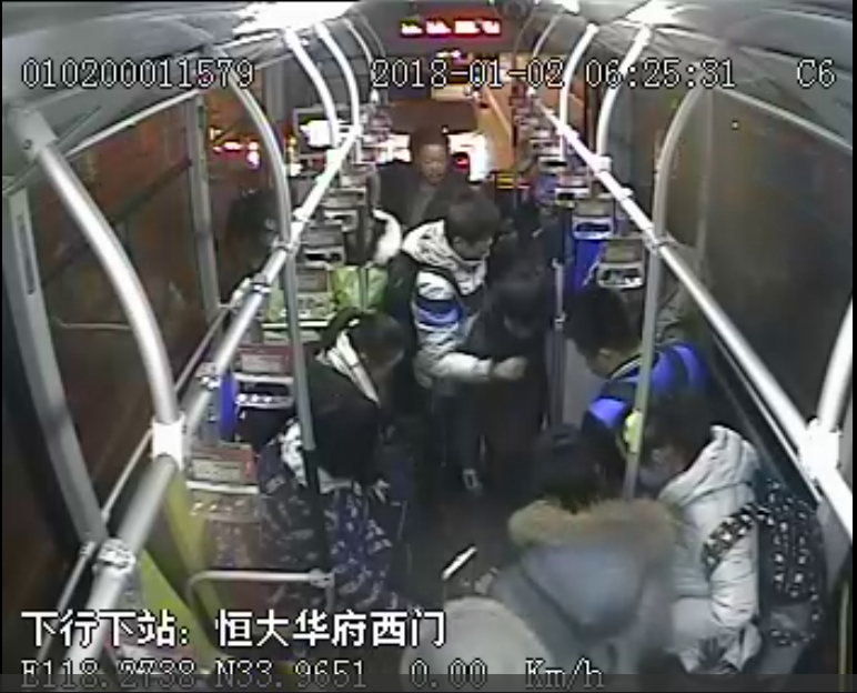 那天早上6點25分,102路車牌號為11579的公交車載著滿滿的乘客,行駛在發(fā)展大道上,在停靠至江蘇有線站臺時。突然,車廂里傳出一聲叫喊:“有人暈倒了!”,這讓公交車駕駛員和車上的乘客都嚇了一跳。駕駛員蔡磊回頭一看,發(fā)現(xiàn)一名學(xué)生暈倒在地上。