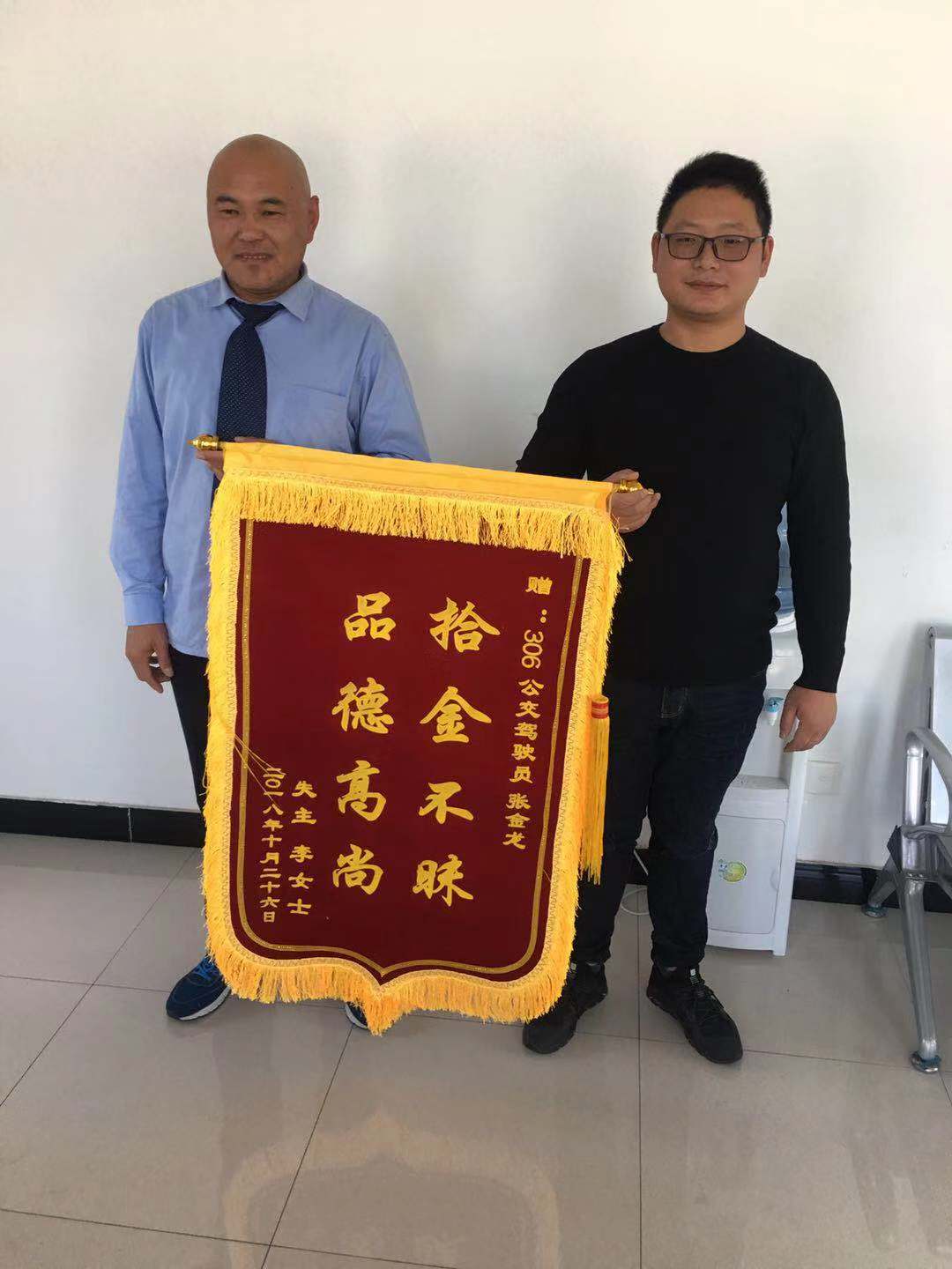 一直等到上午11點(diǎn)多,錢(qián)包的失主才打電話過(guò)來(lái)詢問(wèn),失主得知錢(qián)包沒(méi)有丟失時(shí)非常激動(dòng),下午1點(diǎn)多,拿回失而復(fù)得的錢(qián)包后,失主李女士喜不自禁,感謝連連,第二天專門(mén)定制了一面“拾金不昧”錦旗親手送給張金龍師傅。