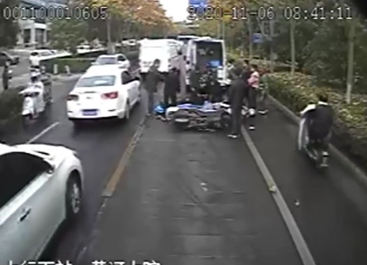 目擊者市民陸女士告訴記者,事發(fā)當(dāng)日上午8點(diǎn)半,在國(guó)網(wǎng)宿遷供電公司北門附近的駱馬湖路上,一名女子騎電動(dòng)自行車不慎與一名駕駛摩托車男子相撞。男子摔倒被壓在摩托車下,因骨折嚴(yán)重不能動(dòng)彈。“當(dāng)時(shí)路面剛灑過水很濕滑,此時(shí)又是上班高峰期,來往車輛不斷,男子躺在馬路上非常危險(xiǎn)。”陸女士回憶說。