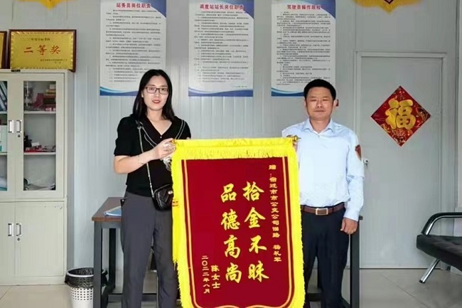 據了解,事發(fā)當日108路駕駛員楊禮軍駕駛車輛到達終點站后,發(fā)現(xiàn)后排坐椅上有一個女士手提袋,楊師傅打開一看發(fā)現(xiàn)里面居然有現(xiàn)金1萬元,他立即把包交調度室妥善保管,與此同時,失主陳女士也焦急地返回尋找。經調度室仔細審核和確認后,1萬元現(xiàn)金分毫不差物歸原主。