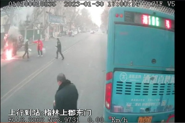 路遇三輪車起火,這位公交司機秒變“消防員”!