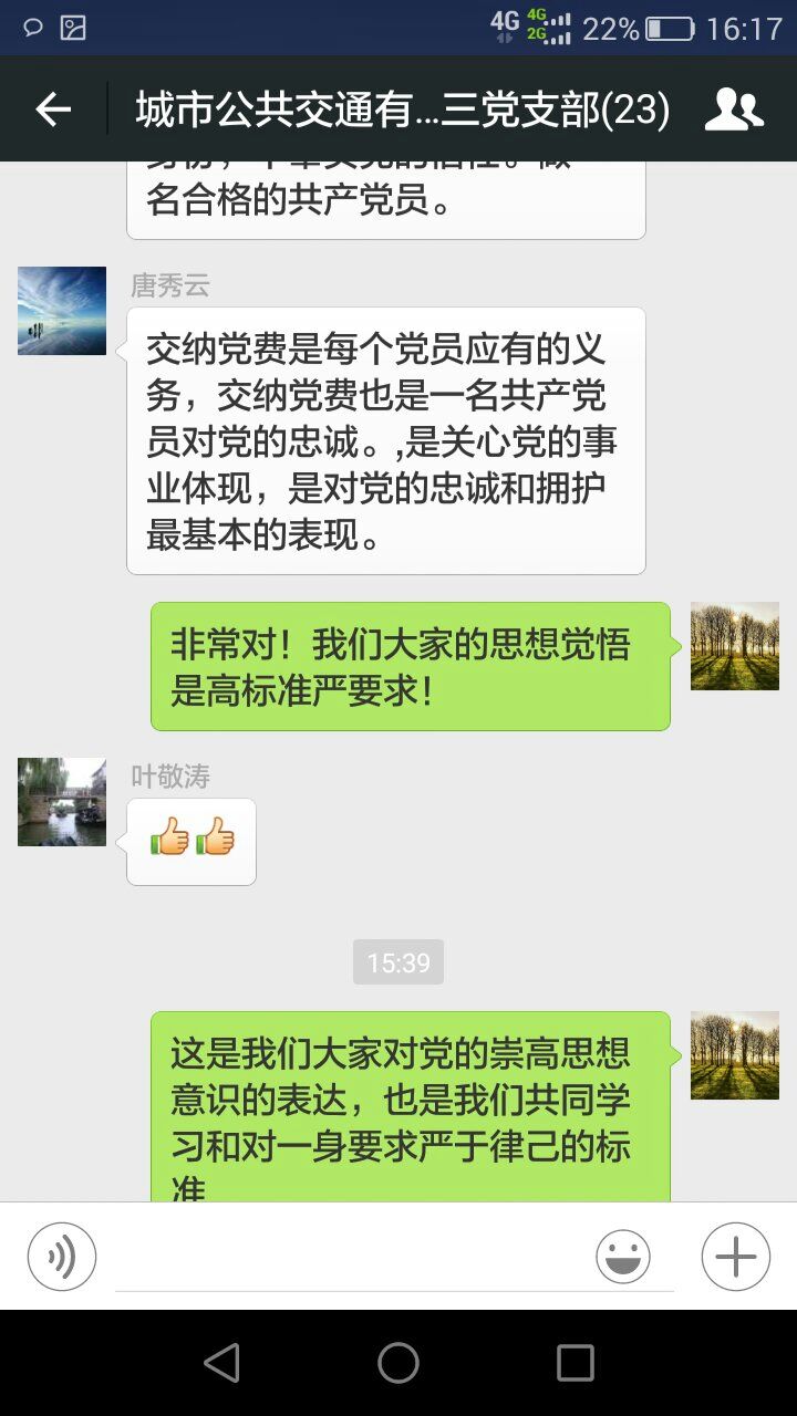 為增強(qiáng)學(xué)習(xí)效果,市公交公司黨總支督導(dǎo)各支部在抓好集中學(xué)習(xí)教育的基礎(chǔ)上,把各黨支部微信群打造成“兩學(xué)一做”學(xué)習(xí)教育的“微課堂”,利用微信這種新媒體可以及時上傳、轉(zhuǎn)發(fā)學(xué)習(xí)知識要點及優(yōu)秀學(xué)習(xí)視頻,方便黨員高效快捷進(jìn)行自學(xué),同時還能通過微信群開展群討論活動,受到廣大公交黨員的一致稱贊。