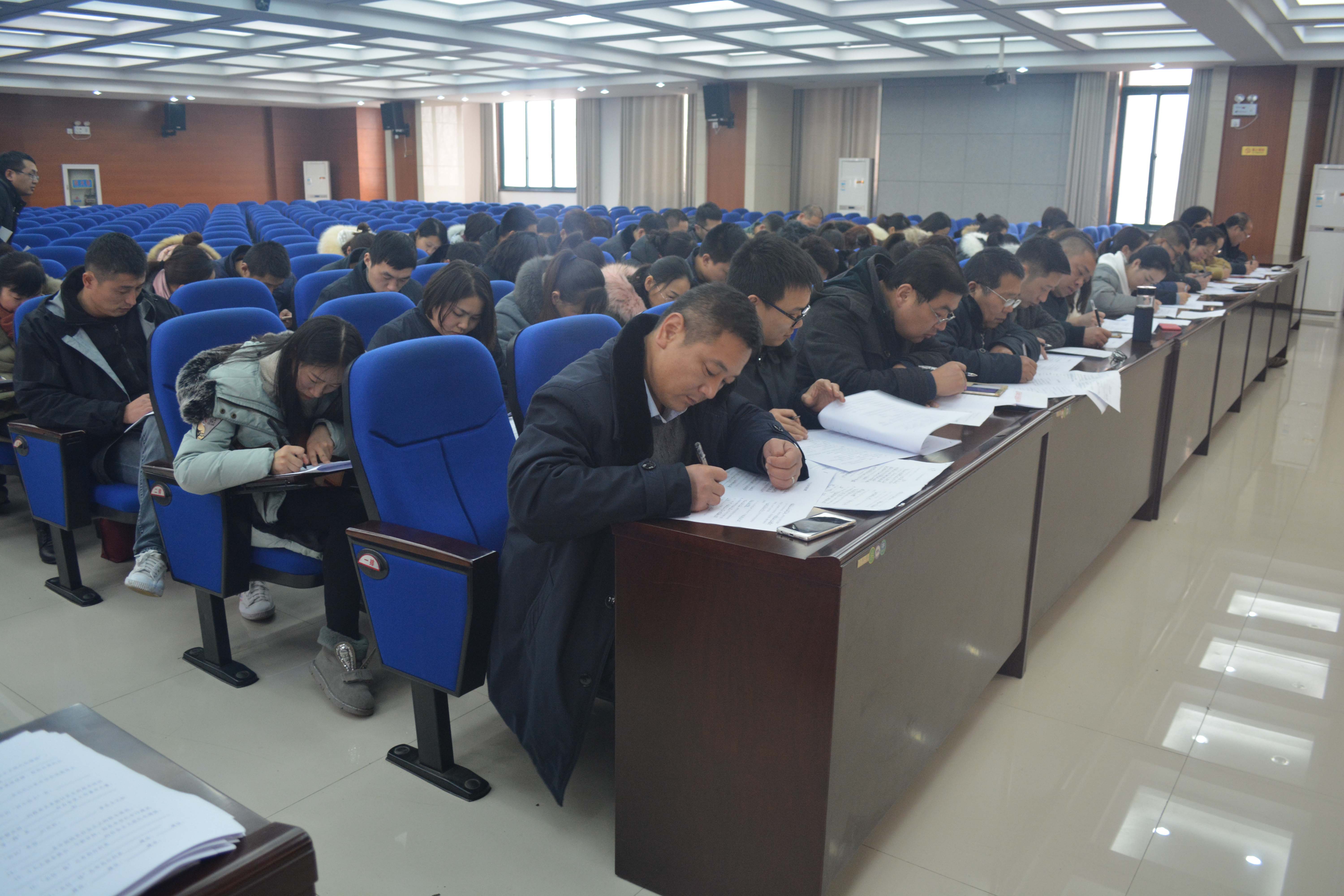 此次知識測試采取閉卷的方式進行,測試內容包括《中國共產黨章程》、十九大會議精神、應知應會等方面的內容,題型包括填空、選擇、簡答等多種形式。測試現場,全體干部職工認真思考作答,在規定的60分鐘答題時間里全部完成答題。