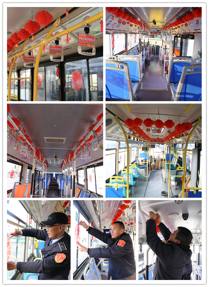 為讓乘客在舒適溫馨的車廂內(nèi)感受到新年氛圍,2月1日市公交公司黨員干部職工和駕駛員師傅們利用業(yè)余時間親自用具有中國傳統(tǒng)節(jié)日氣氛的裝飾品裝扮公交車廂。此次活動公交公司選擇途徑市區(qū)客流量較大的102路、302路、304路、311路和游2路5條線路。經(jīng)過一天緊鑼密鼓的忙活,線路所有公交車廂都被裝扮得喜氣洋洋,年味十足,使乘客們步入車內(nèi)就感受到過節(jié)的氣氛。車廂經(jīng)過精心布置,既烘托了年味,又為乘客帶來了好心情,公交公司希望能讓廣大市民和乘客感受到濃厚的節(jié)日氛圍,也希望能夠讓即將踏上歸途的返鄉(xiāng)人感受到新年的熱鬧和溫暖。