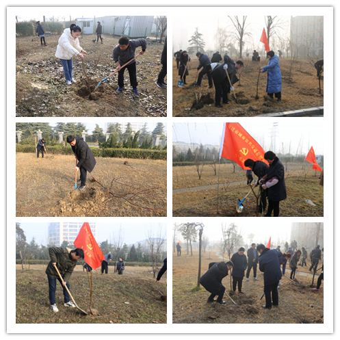寒冷的天氣,并沒有澆滅大家的熱情。植樹現(xiàn)場,氣氛熱烈。廣大黨員干部、職工自愿結合,分工協(xié)作,扛苗散苗、挖坑扶苗、填土夯實、澆水灌溉等各環(huán)節(jié)都認真對待,踏實干活,整個植樹活動現(xiàn)場笑聲、歡樂聲、吆喝聲不斷,洋溢著歡樂祥和、熱火朝天的義務勞動氛圍。此次義務植樹活動共栽種桃樹、柿子樹、櫻桃樹、棗樹共計200余株,大家都表示要嚴格保證樹苗的成活率,營造一片綠色環(huán)境,守住一片綠色,多栽一棵樹,爭當一名合格的綠色護衛(wèi)者。