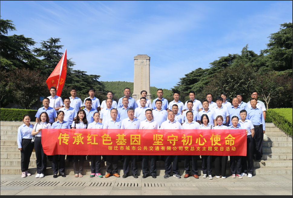 為緬懷革命先烈,重溫紅色歷史,繼承發揚偉大的淮海戰役精神, 8月20日上午,宿遷市公交公司黨總支組織優秀黨員、黨務工作者和預備黨員開展“傳承紅色基因·堅守初心使命”主題黨日活動。全體黨員懷著無比崇敬的心情,來到徐州鳳凰山東麓,瞻仰淮海戰役烈士紀念塔,向革命先烈敬獻花籃,并面對黨旗,重溫入黨誓詞。參觀淮海戰役紀念館,全體黨員又一次真切地感受了革命的氣息,一張張圖片、一件件實物、一個個場景,再現了發生在淮海大地的這場驚心動魄的大戰役。通過參觀學習,全體黨員的思想和心靈接受了一次洗禮,汲取了革命精神和力量,更加堅定了對黨絕對忠誠的決心,進一步增強歷史責任感和使命感,不忘初心,砥礪前進。