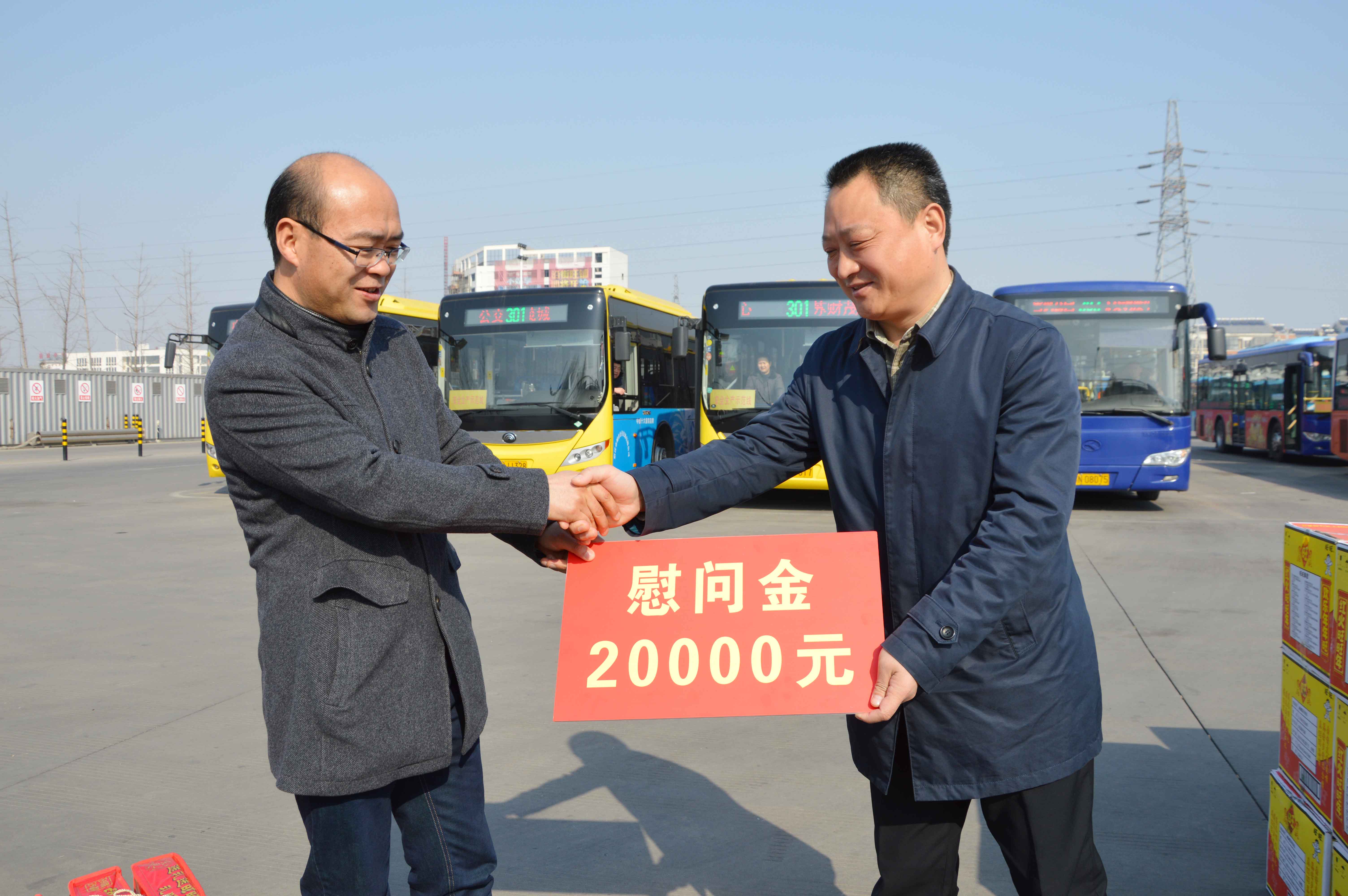 慰問中,劉飛總經理一行認真察看了節日期間公交職工的伙食保障情況,詳細詢問了節日期間公交發班和車輛運行情況。他對公交職工舍小家顧大家、始終如一堅守營運生產一線的無私奉獻精神予以了充分肯定,并親自為公交職工送上了慰問大禮包和節日祝福。同時,他還代表市交通產業集團向公司送上了二萬元慰問金。