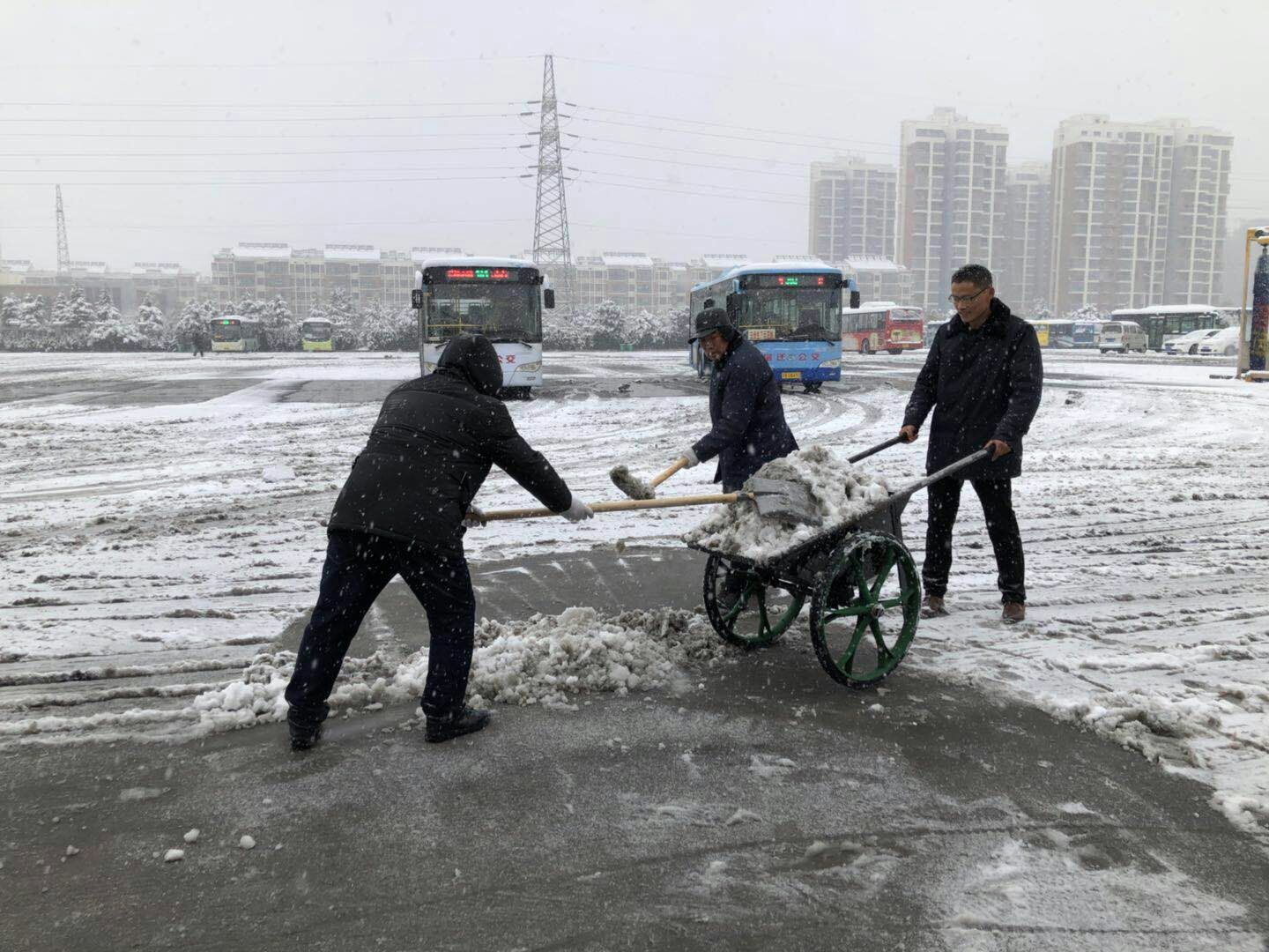 每名員工分工明確,對(duì)場(chǎng)站路面進(jìn)行撒鹽化雪,掃把除雪,鐵鏟除冰,經(jīng)過一小時(shí)的通力奮戰(zhàn),各站場(chǎng)內(nèi)積雪基本清掃干凈,保障了車輛全部上線運(yùn)營(yíng),不耽誤市民出行。