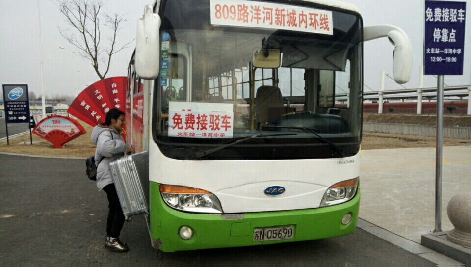 市區前往洋河火車站的旅客,可從市區乘坐108路、109路在洋河中學站點(路南站點)下車后,免費乘坐接駁車到達洋河火車站進口處;從洋河火車站下車后前往市區的旅客,可從洋河火車站出口處免費乘坐接駁車,在洋河中學站點(路北站點)下車后,乘坐108路、109路直達市區。免費接駁車服務時間為12:00—18:00。