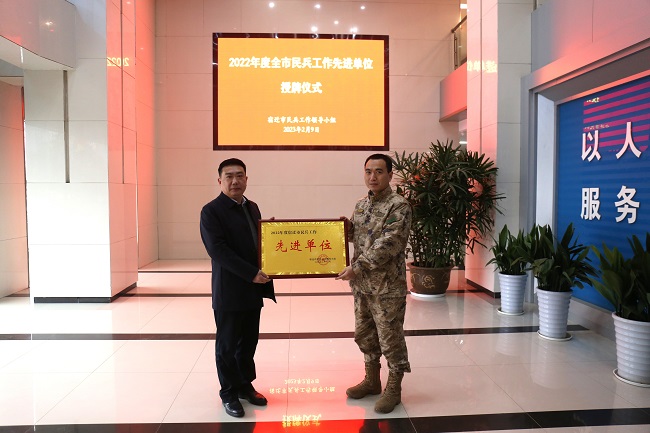 2月9日,宿遷市軍分區(qū)副司令員陳劍利為市公交公司頒發(fā)“2022年度全市民兵工作先進(jìn)單位”獎(jiǎng)牌。宿遷軍分區(qū)動(dòng)員處處長(zhǎng)吳朝偉,宿城區(qū)人武部政委王紹雪等民兵工作領(lǐng)導(dǎo)小組成員,市公交公司黨總支書(shū)記、總經(jīng)理朱宗明等領(lǐng)導(dǎo)班子成員參與授牌儀式。