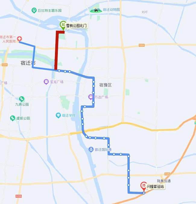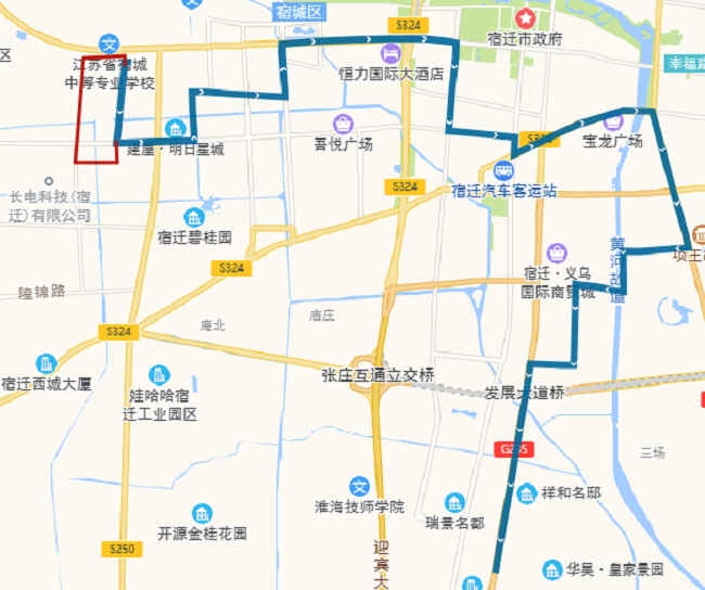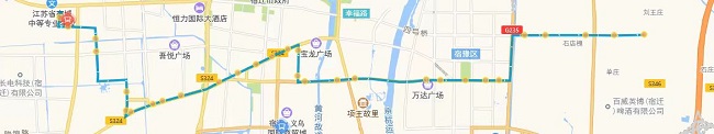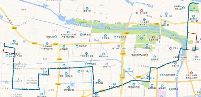 (五)802路。將現(xiàn)通湖大道—姑蘇路—通達大道—蘇州路—人民大道—廈門路—發(fā)展大道—項王路—項王東路—珠江路—珠江路公交首末站路段,優(yōu)化為通湖大道—金雞湖路—通達大道—玄武湖西路—振興大道—吉林路—渤海路—青海湖西路—迎賓大道—洪澤湖路—發(fā)展大道—宿支路—市第一人民醫(yī)院公交首末站。