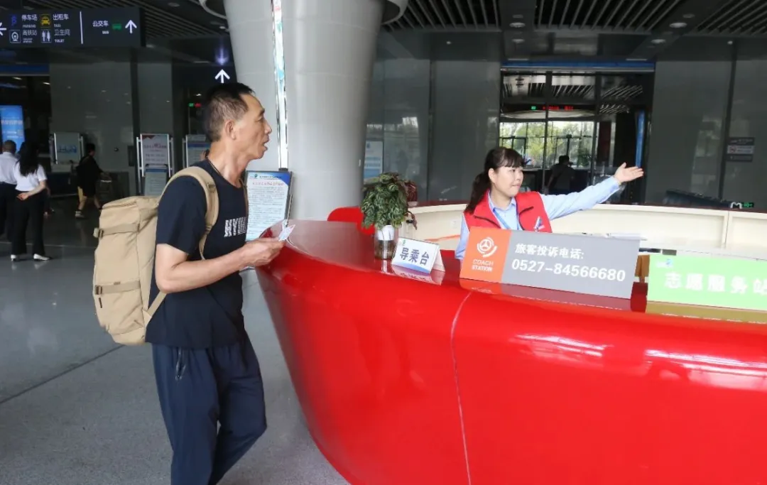 志愿者們穿梭在高鐵調度站候車場,維持候車現場秩序,引導乘客有序上下車,耐心細致解答乘客問詢并進行安全文明乘車知識宣講,有效緩解了候車區域的客流壓力,更提升了市民公交出行體驗。